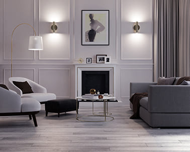 Адреса магазиновМинерально-каменный MSPC ламинат Дуб Ривьера — это полы дымчатого светлого цвета с серыми прожилками. Могут менять свой оттенок в зависимости от освещения: при теплом свете они больше похожи на пол цвета слоновой кости, при холодном — становятся бело-серыми. Поверхность имеет глубокую текстурированность и 4-стороннюю глубокую фаску. Ламель имеет узкий формат 141 мм, оптимальный для городских жилых помещений.