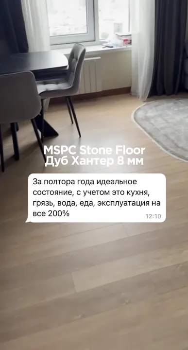 Уложили MSPC на кухню, не ожидали такую ощутимую разницу с обычной плиткой, гораздо теплее. Спокойно выдерживает нагрузку тяжёлого стола из массива.